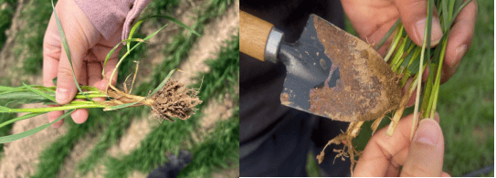 3.病害多发,亟须关注: 小麦纹枯病和茎基腐病等根茎部病害已开始显现,尤其在深播弱苗地块中更为多见和明显。