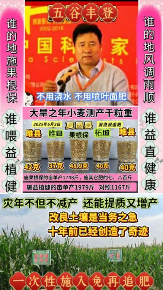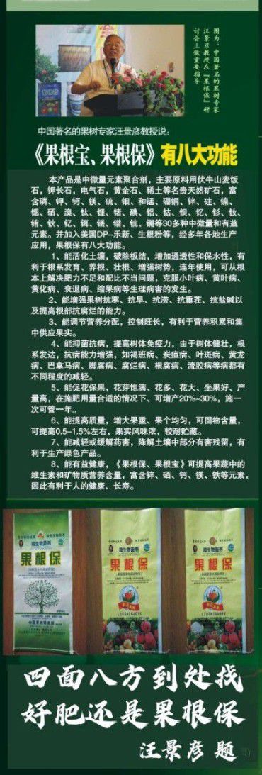 在增产提质方面,果根保的应用效果显著:果树增产30%-80%、糖度提升1-3度,蔬菜增产25%-50%,粮油增产20%-40%,有效提升了农产品的产量与商品价值;在营养强化方面,通过土壤营养调控,让作物自然富集硒、铬、镁等人体必需的微量元素,成为“高营养密度”的健康食材,满足全民健康需求;在绿色安全方面,生产的农产品达到绿色、环保、无公害标准,完美契合新版农药残留限量食品安全国家标准,彻底解决了“农民不敢吃自己种的菜”的尴尬。