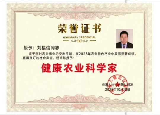 “这些荣誉不是终点,而是继续前行的动力。”刘福信在专访中表示,2026年全国两会对农业科技创新的重视,让他更加坚定了“科技兴农、健康护农”的初心,未来将继续深耕农业一线,用更多技术成果助力乡村振兴。